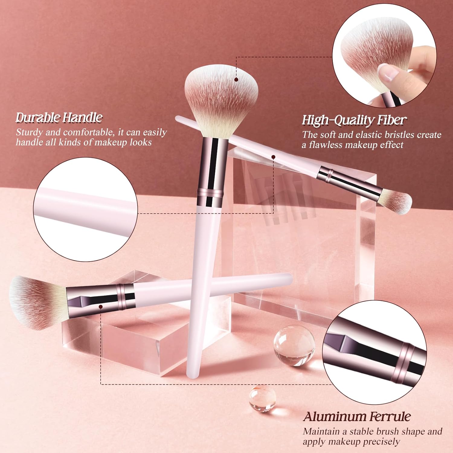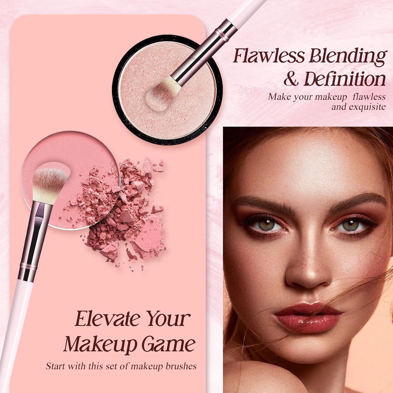 Exquisite tailoring, perfectly fitted: The pink makeup brushes is elaborately designed to present a high-end and elegant texture. The brush heads of each brush are carefully tailored with neat edges, suitable for all face shapes. Whether for large-scale shading or precise outlining, they can be handled very easily. With this set of exquisitely designed makeup brushes, every stroke of yours will be brimming with confidence and professionalism.